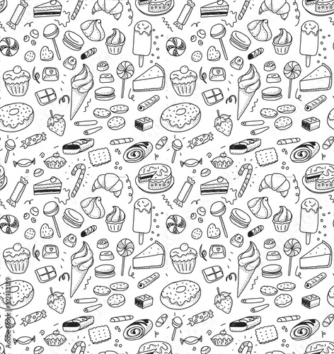 Hand Drawn Sweets And Candies Pattern Vector Doodles Isolated Food