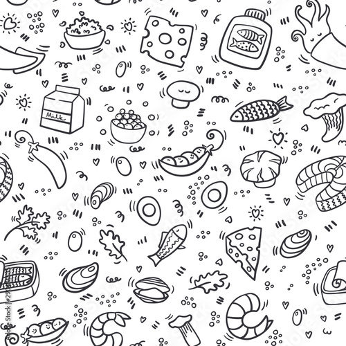 Seamless Pattern Background Food And Ingredient Kids Hand Drawing