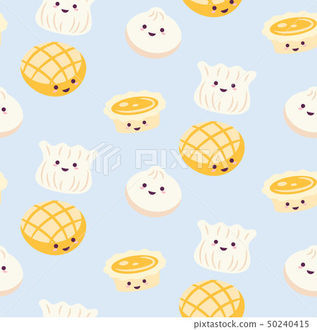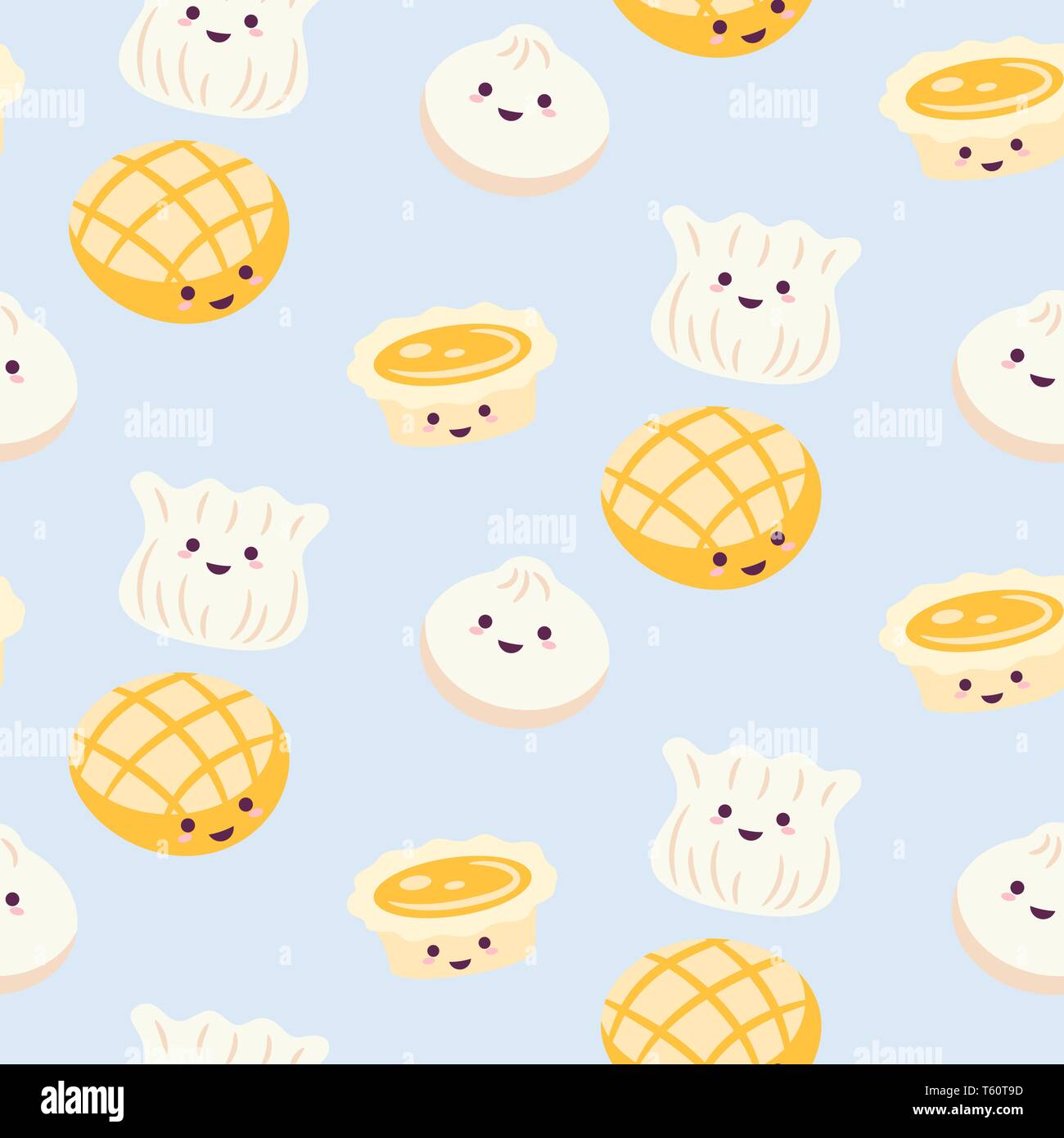 Chinese Cuisine Cartoon Style Food Pattern Vector With Egg Tart