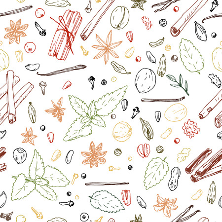 Vector Food Pattern Hand Drawn Seamless Background A Bottle Of