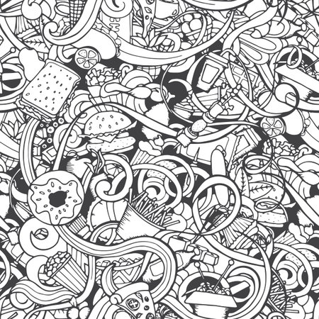Vector Art Seamless Doodles Abstract Fast Food Pattern Clipart