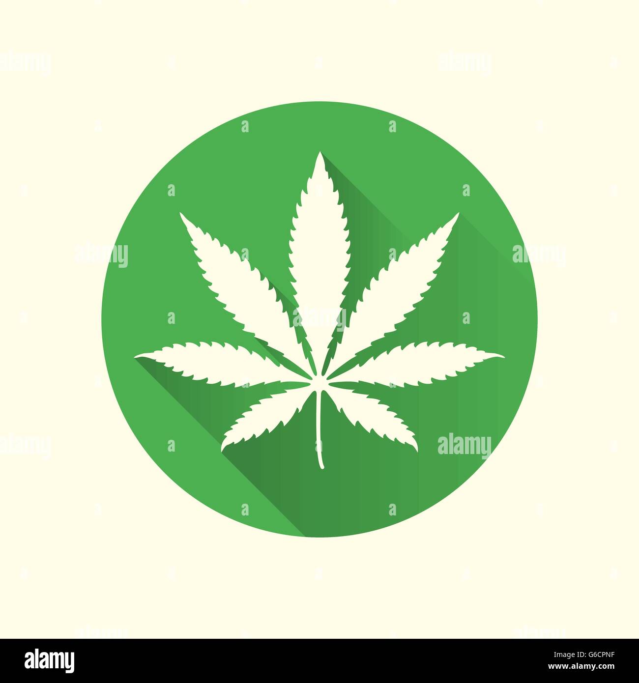 Vector Green Color Cannabis Leaf Marijuana Flat Design Icon With