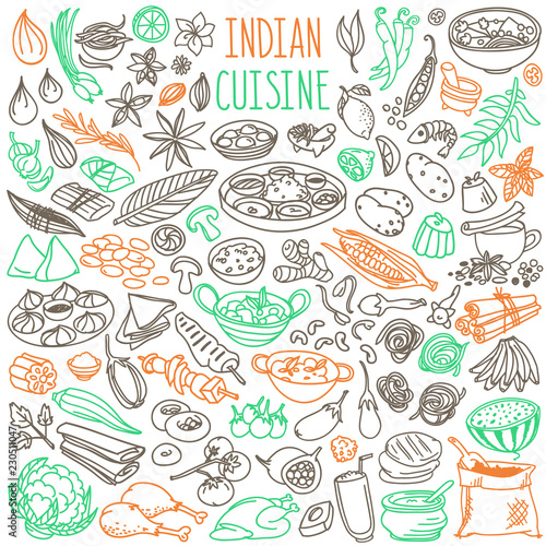 Indian Food Doodles Set National Cuisine Main Dishes Desserts