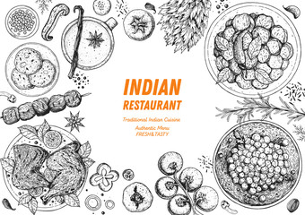Indian Food Menu Hand Drawn Design Asian Cuisine Graphics With