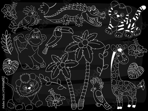 Vector Chalkboard Safari Animals Set Vector Jungle Set On