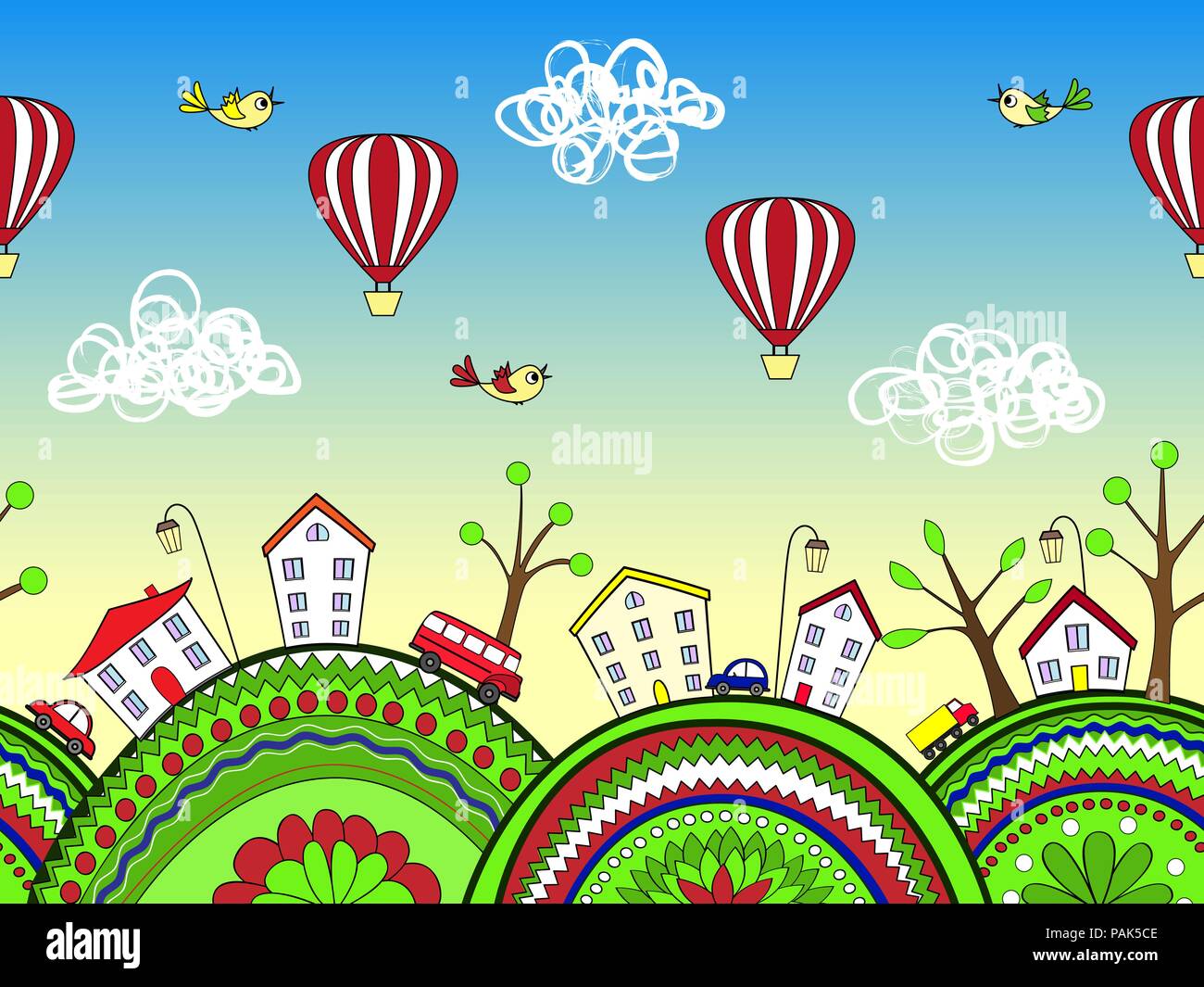 Cute Doodle Kids Background With Hills Stock Vector Image Art