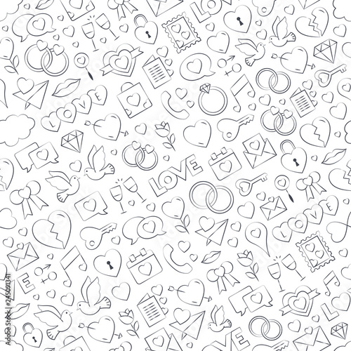 Seamless Love Pattern Vector Illustration Freehand Drawing On