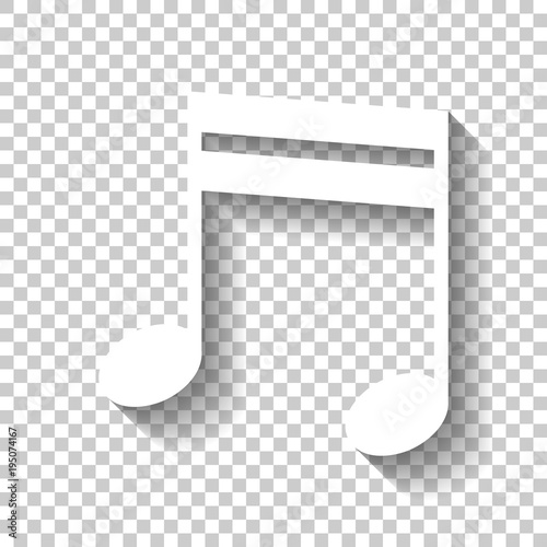 Music Note Sign Vector White Icon With Soft Shadow On Transparent