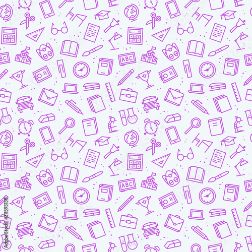 Education Pattern With Icons Pink Color School Supplies For