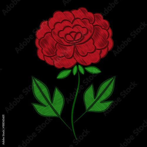 Vintage Floral Embroidery Pattern Vector Red Peony Flower