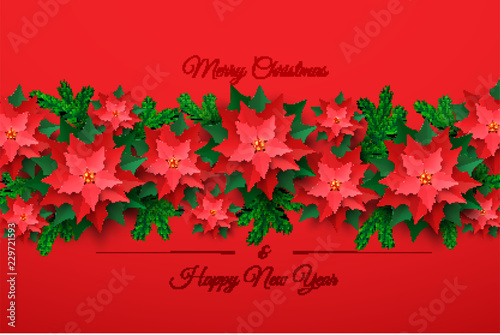 Vector Red Christmas Tree Made Of 3d Layered Poinsettia Flower In