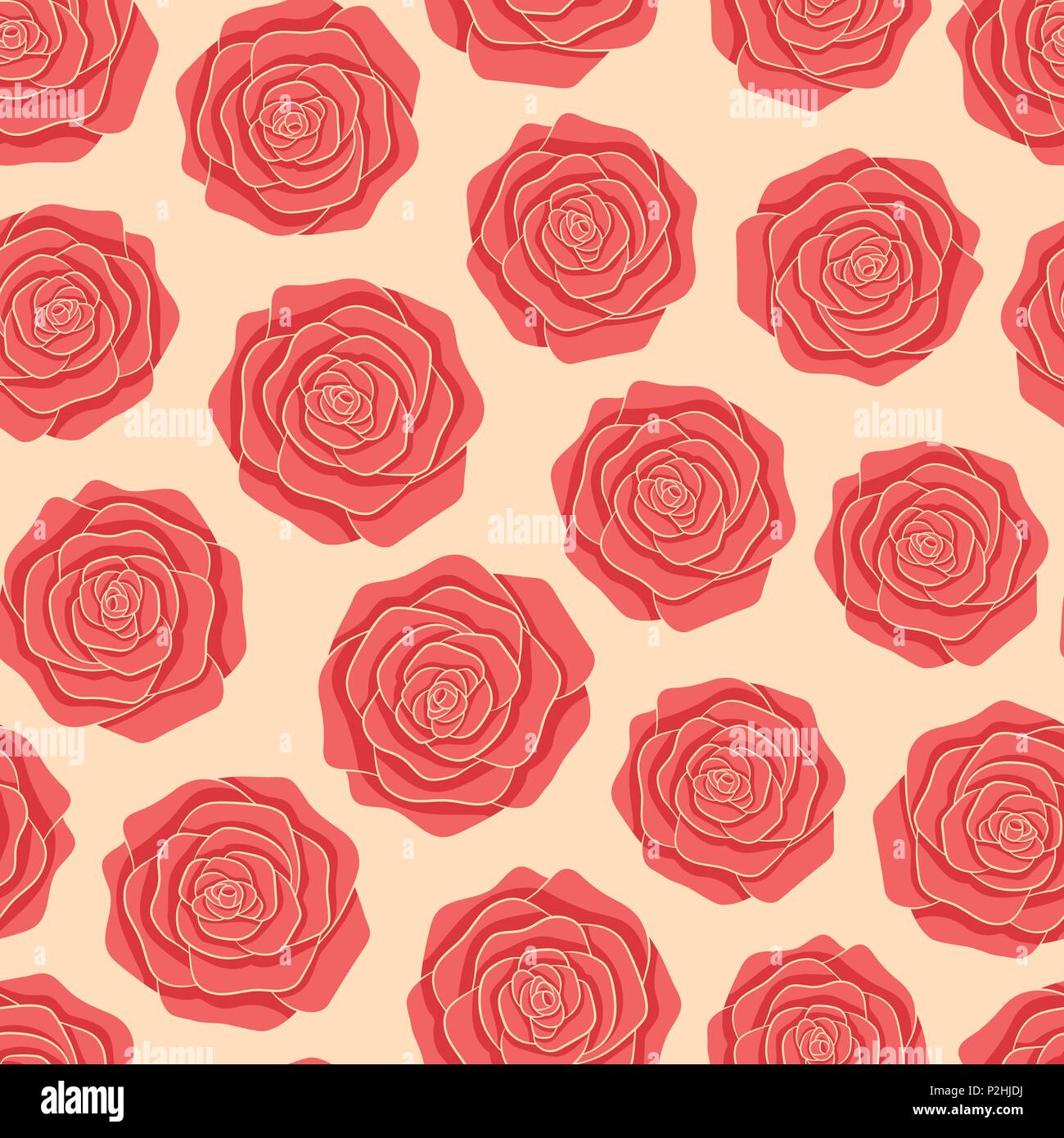 Vector Red Roses Seamless Pattern On The Beige Background