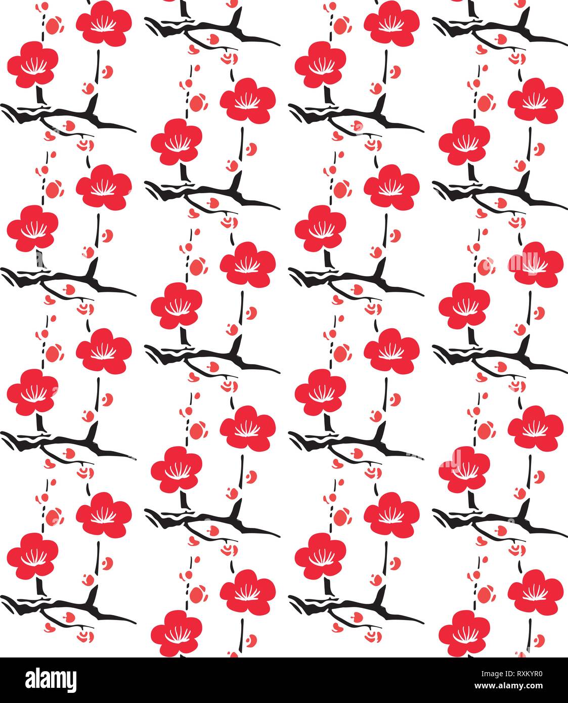 Japanese Pattern Background Vector Red Flower Stock Vector