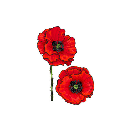 Vector Red Poppy Flower Blossom Blooming Closeup Vector Red Poppy