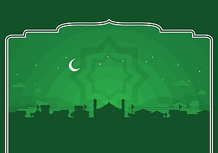 Background City Green And White Selamat Hari Raya Cartoon Vector
