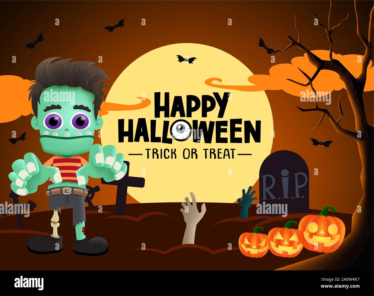 Halloween Zombie Vector Background Happy Halloween Trick Or Treat