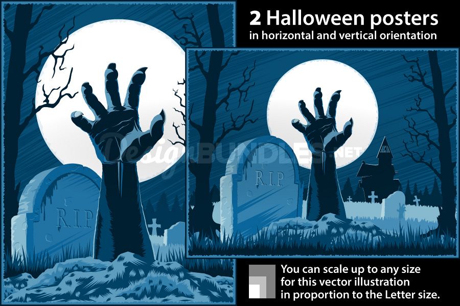 Vector Zombie Hand Cemetery Halloween Vintage Background Horror